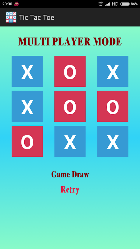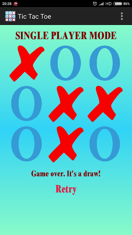 Single Player / Multi Player Tic Tac Toe Android Game !! No need of any person !! You can play tic tac toe with android device as your opponent.