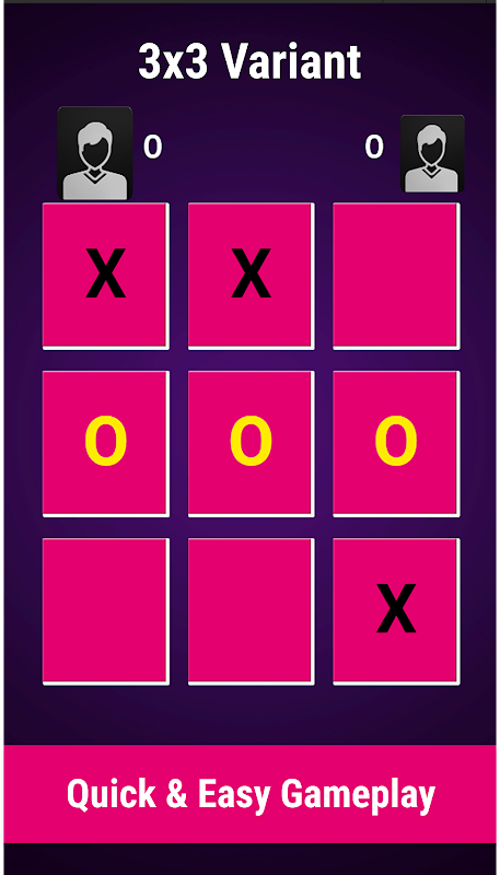 دلچسپ نئے موڑ کے ساتھ Tic Tac Toe کے لازوال تفریح کا لطف اٹھائیں۔ آف لائن 2 پلیئر موڈ میں ایک سمارٹ بوٹ یا دوست کو چیلنج کریں، اور بورڈ کے تین منفرد سائز—3x3، 5x5، اور 7x7—میں سے ہر ایک مختلف سطح کی حکمت عملی اور چیلنج پیش کرتا ہے۔