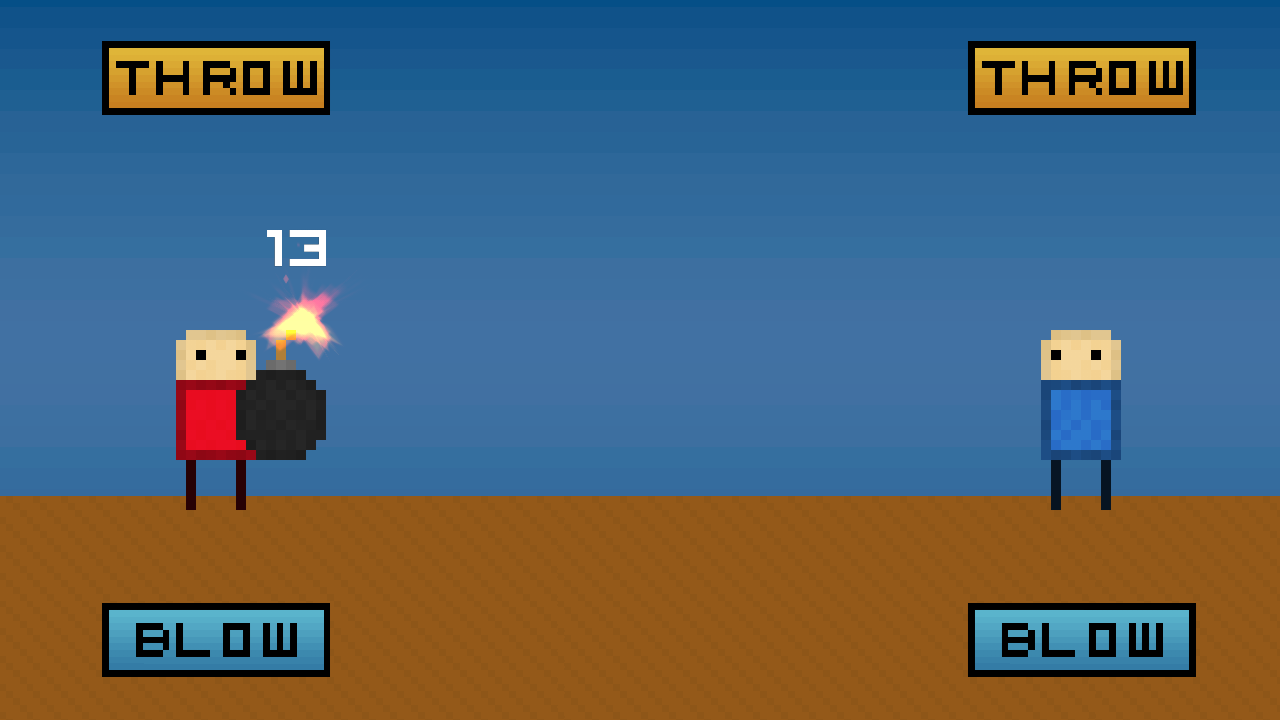 Each player has a part of the screen with two buttons, "Throw" or "Blow".