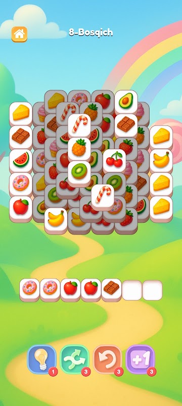 Mazali mevalarni toping, 3 tasini moslang va darajalarni tozalang! 🍓🧠