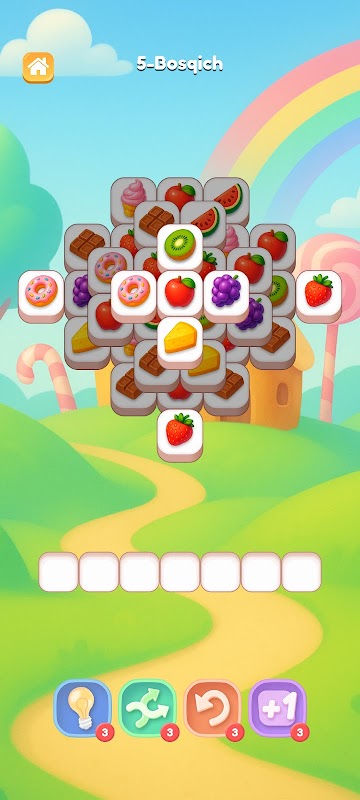 Ustma-ust joylashgan shirinlik bloklarini oching, 3 ta bir xilini topib, ularni yo‘q qiling va bosqichlarni mufaqiyatli yakunlang!