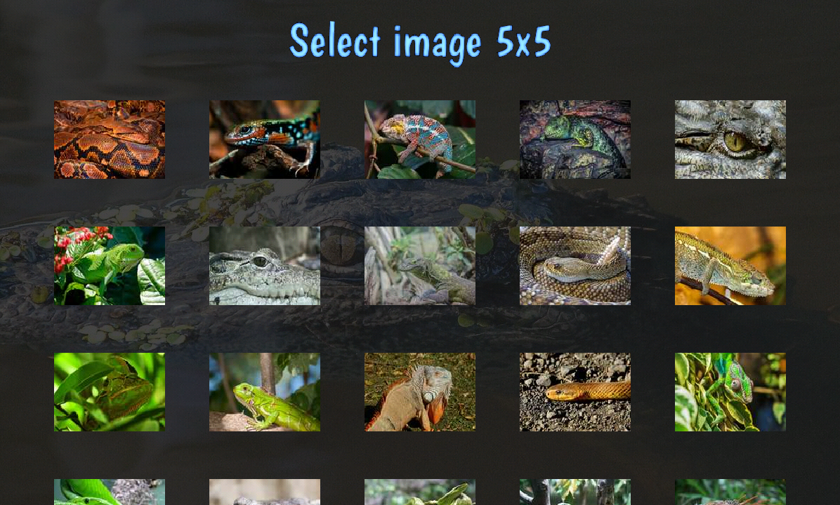 Solve this reptiles tile puzzle by dragging and dropping the image tiles. You can choose between different puzzle sizes and there are lots of reptiles images with different difficulties available.