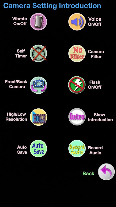 After you finish your shot, you can save it, or share it to your friends directly by press share icon. You can also browse the pictures you took using the its Picture browser.