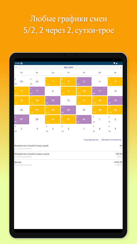 کے پرانے ورژن Timesheet: Рабочий график смен