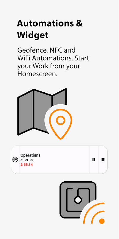 - ون ٹیپ ٹائمر فوری طور پر کام کے سیشن شروع اور روکتا ہے، یہاں تک کہ آف لائن رہتے ہوئے بھی