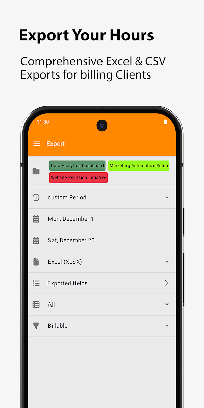 - اپنی مرضی کے نرخوں اور ٹیگز کے ساتھ کلائنٹ، پروجیکٹ اور ٹاسک کے لحاظ سے وقت کو منظم کریں۔
