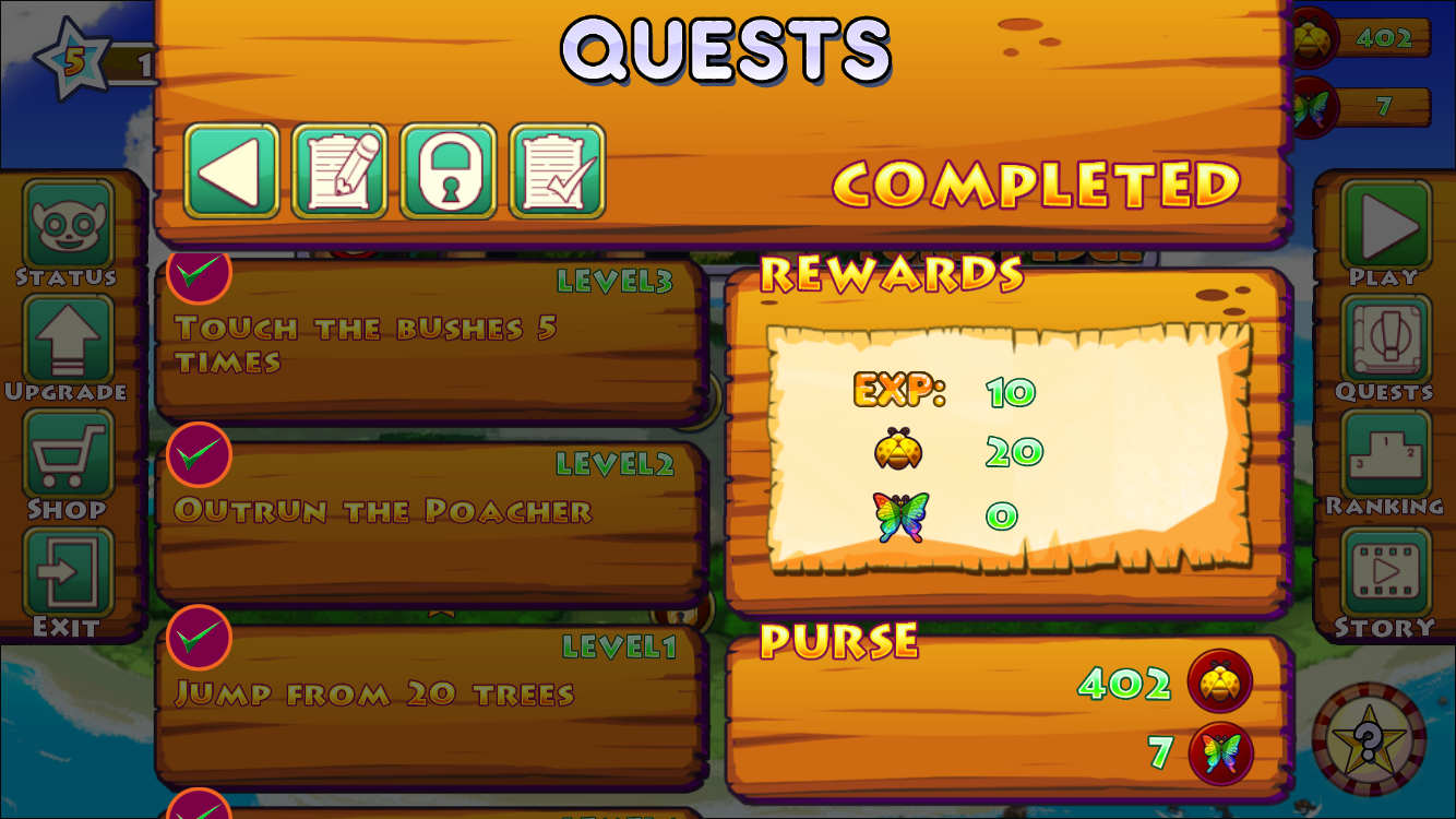 Tiny Monkey Escape is a game that sets a new benchmark of the platfomer or RPG runner genre as it combines a casual arcade jumper and RPG gameplay with tons of skills and abilities to learn and upgrade.