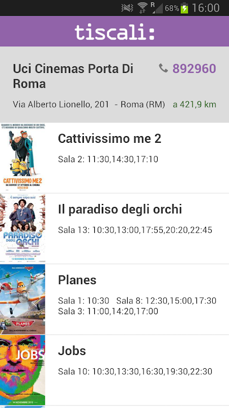 Avrai inoltre a disposizione i servizi Tiscali: la Mail, il Meteo e il Trovacinema, con il quale puoi trovare i film nei cinema della tua città e invitare i tuoi amici a vederli con te!