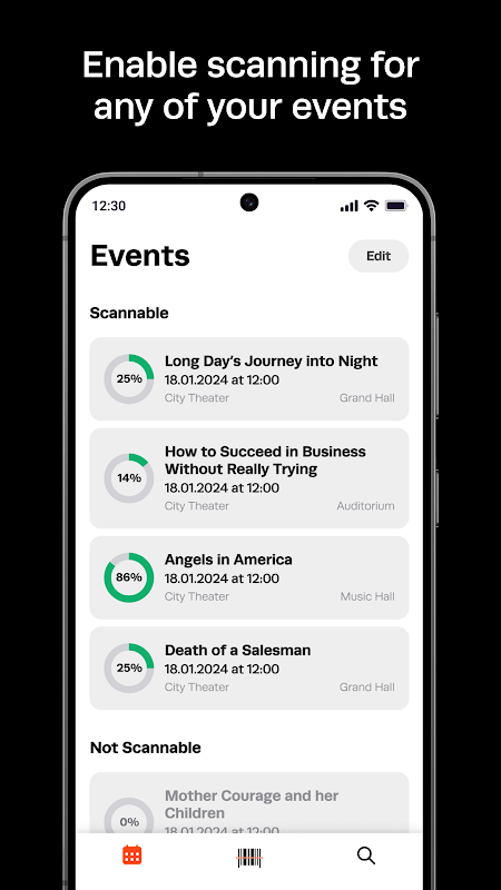 ٹکٹ، مصنوعات اور رکنیت کارڈ اسکین کریں۔ ایک ہی ترتیب میں ایک ہی وقت میں متعدد ٹکٹوں کو اسکین کریں۔ ایپ ان اسکین فعالیت بھی پیش کرتی ہے۔