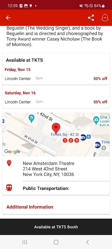 نیویارک شہر میں دنیا کے مشہور ٹی کے ٹی ایس ڈسکاؤنٹ ٹکٹ بوتھس کے لیے آفیشل ایپ۔