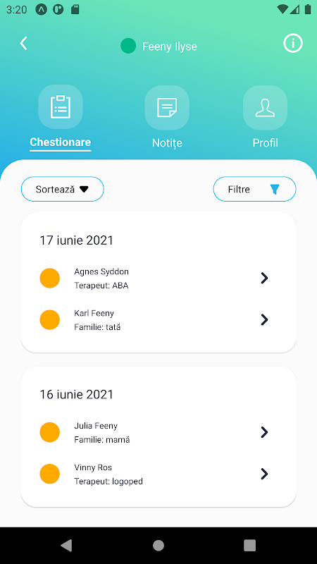 ایپ کی بنیادی فعالیت صارفین کے ذریعہ سوالناموں کی تکمیل ہے، ایک تیز اور تفریحی عمل جو چلتے پھرتے قابل رسائی ہے جو اپنے متعلقہ اراکین کی جسمانی اور ذہنی صحت کی حالت کے بارے میں ڈیٹا کو جمع کرنے، پروسیسنگ اور استعمال کرنے کی اجازت دیتا ہے۔