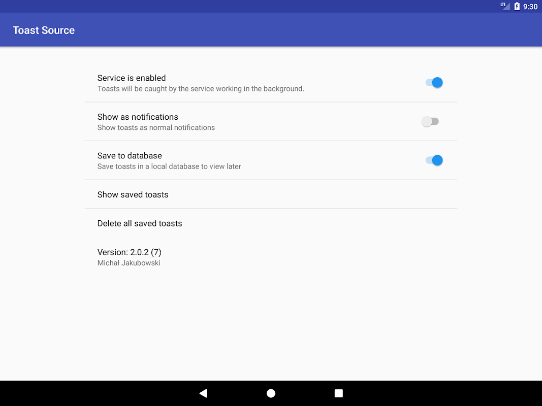 یہ ایپ قابل رسائ خدمات کا استعمال کرتی ہے۔ وہ ٹوسٹس کا پتہ لگانے اور ان کے مشمولات کو پڑھنے کے ساتھ ساتھ میٹا ڈیٹا (جیسے ٹوسٹ تیار کرنے والے ایپ کا نام اور شناخت کنندہ) کے لئے استعمال کیا جاتا ہے۔