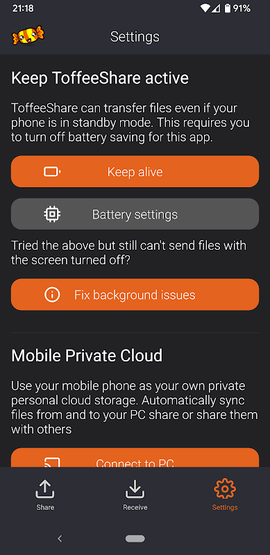 اپنے فون سے براہ راست کسی کے ساتھ فائلیں شیئر کریں۔ کچھ بھی کبھی آن لائن محفوظ نہیں کیا جاتا ہے۔ آپ کا ڈیٹا آپ کے ہاتھ میں رہتا ہے، جیسا کہ ہونا چاہیے۔ ToffeeShare فائلوں کو براہ راست آپ کے موبائل فون سے دوسرے آلات پر منتقل کرنے کے لیے اینڈ ٹو اینڈ انکرپٹڈ پیئر ٹو پیئر ٹیکنالوجی کا استعمال کرتا ہے۔