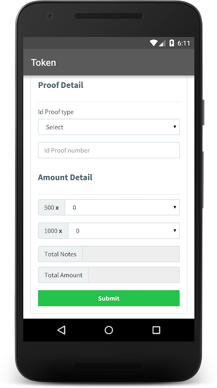 2: User will enter the name , account number , number of 500 notes , 1000 notes(for bank easiness) , id proof (optional for some banks) and submit the forms and get their token numbers