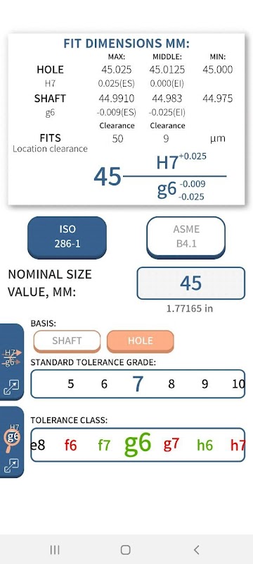 2) ایک سائز کے لیے رواداری کا انتخاب، دیے گئے سائز کے انحراف کے مطابق (5 رواداری کے اختیارات پیش کرتا ہے)۔ نیز رواداری کا انتخاب ASME B 4.1 (ANSI B 4.1) کے مطابق رواداری کے لیے کام کرتا ہے۔