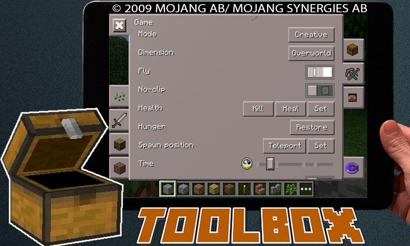 آپ کے کھیل کے اعصاب کو جلدی اور بغیر اعصاب کے ہر قسم کے بلاکس ، ٹولز اور اشیاء تک رسائی حاصل کرنے اور اپنی دنیا کی ترتیبات جیسے موسم ، گیم پلے اور بہت کچھ تبدیل کرنے کے ل Tool ٹول بکس موڈ ایک بہترین موڈ ہے۔ موڈ آپ کو اپنی دنیاؤں کے گیم پلے میں متن اور دیگر انوکھی خصوصیات کو لوڈ کرنے کیلئے کنٹرول پینل کا استعمال کرنے کی اجازت دیتا ہے۔