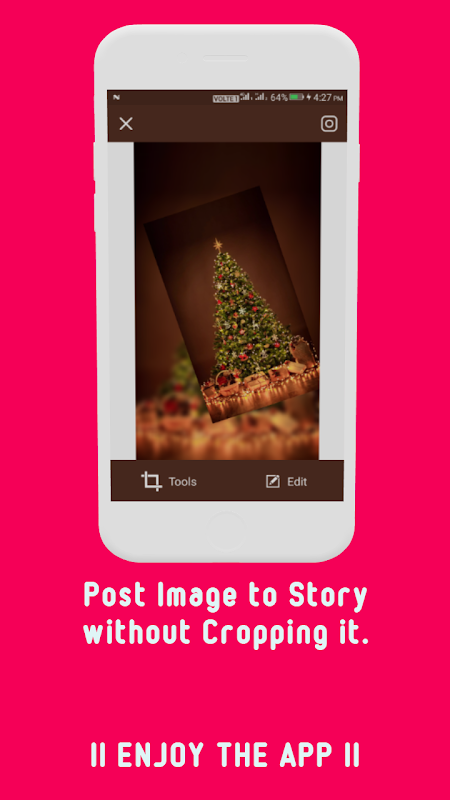 Post your Horizontal photo as it is as story without cropping. Add Blurred Background, background colors, color gradients or frames. Story will possibly posted automatically on few devices, other needs to post manually.