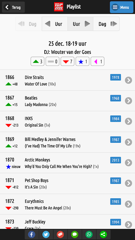 فی الحال سب سے زیادہ درجہ بندی کردہ ٹاپ 2000 کی ایپ ، خاص طور پر ٹاپ 2000 کے تمام شائقین کے لئے بنائی گئی ہے۔ 2013 سے پلے اسٹور پر موجود ہے۔