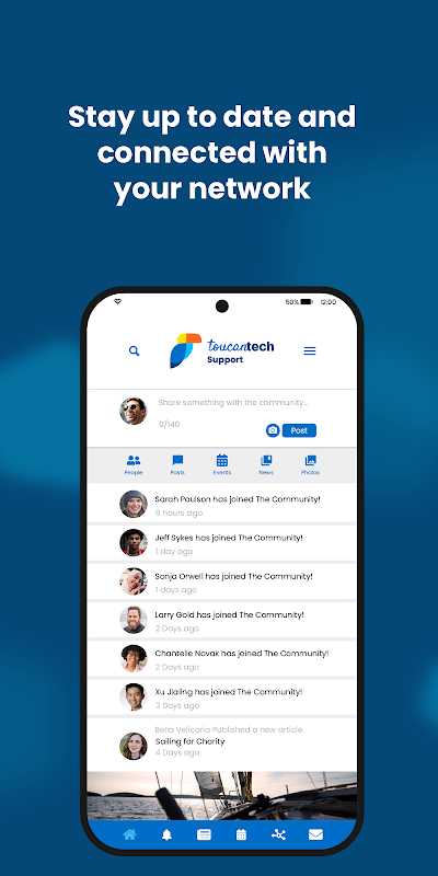 اگر آپ کے پاس ToucanTech سپورٹ کے ساتھ آن لائن پروفائل ہے، تو آپ ToucanTech سپورٹ کی خبروں، واقعات اور اطلاعات تک فوری رسائی دینے کے لیے اس ایپ کو ڈاؤن لوڈ اور لاگ ان کر سکتے ہیں۔ ہمیشہ آپ کی انگلی پر قابل رسائی، یہ منفرد ایپ آپ کو نیٹ ورک بنانے اور رابطے میں رہنے میں مدد کرتی ہے۔ براہ کرم اپنے پروفائل کو اپ ٹو ڈیٹ رکھیں اور ہماری کمیونٹی کو متحرک اور منسلک رکھنے میں مدد کے لیے اپنی خبریں، خیالات، تصاویر اور کوئی بھی مفید یا دلچسپ لنک شیئر کریں!