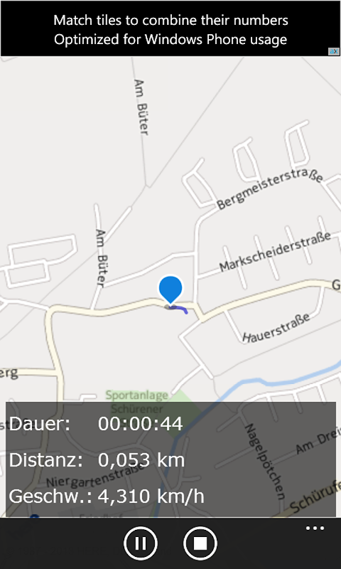 • Open Track & Map app and tap the Map button. The map will be shown. To start the stopwatch and the route tracking feature press START toolbar button
