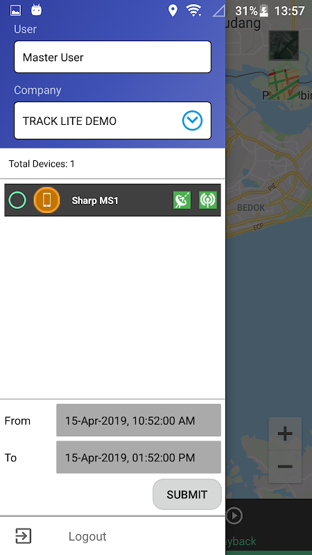 ٹریک ایس جی ایڈمن موبائل آلات کی تلاش کا اصل وقت پر نظر رکھتا ہے اور ان موبائل آلات کے ذریعہ کیے جانے والے روزانہ کے راستوں کو ریکارڈ کرتا ہے۔