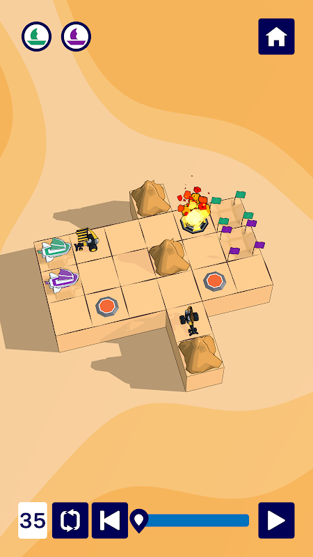 صحرائی گرڈ کے پار راستے بنا کر اپنے راستے کی منصوبہ بندی کریں۔ تمام ریت کے جہازوں کو ایک ہی جگہ پر دو بار جانے کے بغیر اور ایک دوسرے سے ٹکرائے بغیر اپنی پگڈنڈیوں پر عمل کرنا چاہیے۔ آپ جس راستے کا خاکہ بناتے ہیں اس کے ساتھ، آپ ٹیلوں کے پار راستوں کا ایک جال بنا رہے ہیں۔