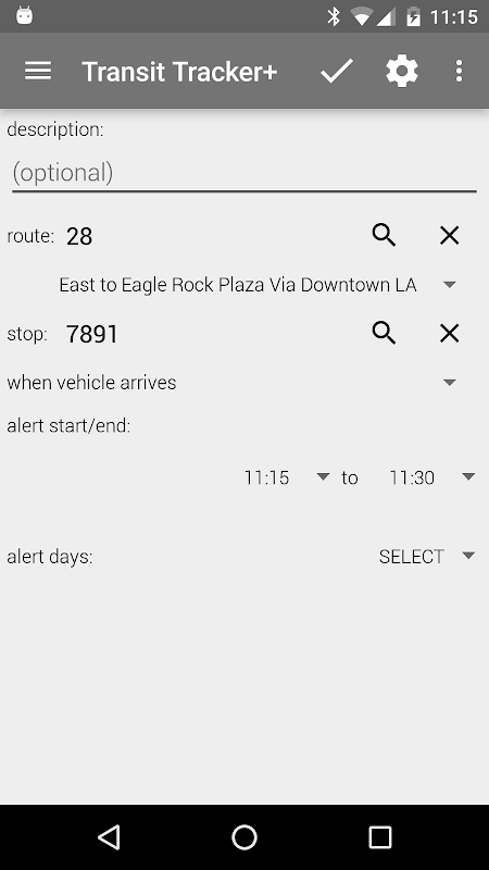 Transit Tracker - LA allows you to define alerts for Metro routes and stops; get a notification when a vehicle on a specific route is approaching or arriving at a particular stop.