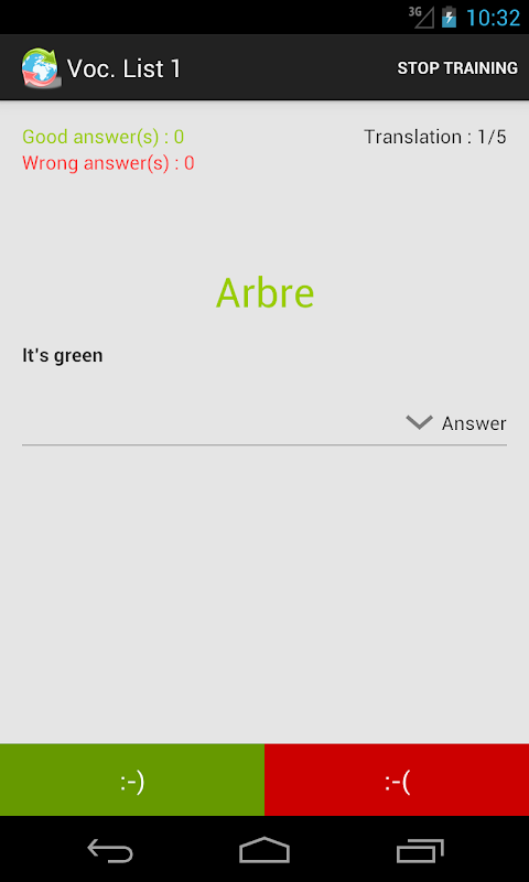 - The Auto mode : In this faster mode, you haven’t the four possible answers, just two button : “I know” and “I don’t know”. Answer honestly !