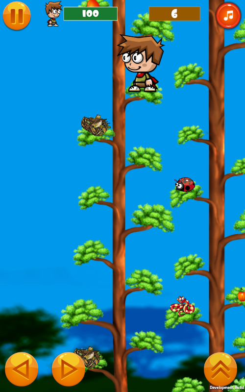 In this game player has to climb a tree. There will be a big tree with lots of branches. Player has to climb that tree. He has to climb from branch to branch and has to collect fruits. There will be lots insects. He has to avoid insects otherwise his life will decreased. There will be given limited time to collect the target amount of fruits.
