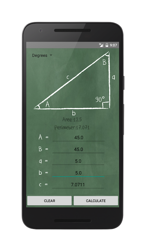 اس اطلاق کے ذریعے آپ تین اطراف ، یا دو زاویوں اور ایک رخا ، یا ایک زاویہ اور دو اطراف میں داخل کرکے مثلث حل کرسکتے ہیں۔ آپ سہ رخی مثلث کے ذریعے مثلث کی بقیہ اقدار کو تلاش کرنے کے لئے دو اطراف ، یا ایک زاویہ اور ایک رخ میں داخل کرکے بھی حل کرسکتے ہیں۔