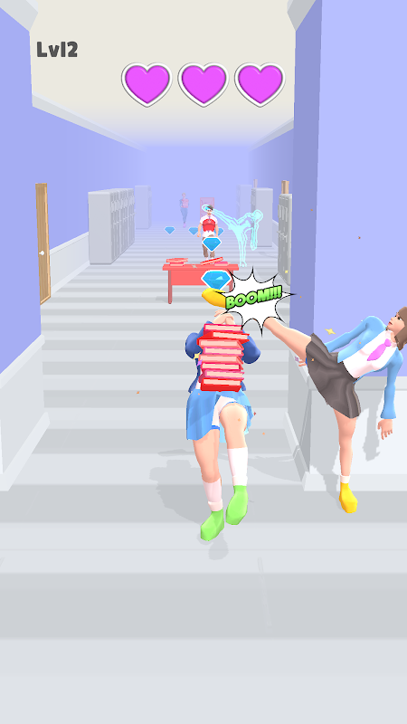 Tackle all the school population while avoiding the obstacles. Try not to miss more than 3 people to win the level!