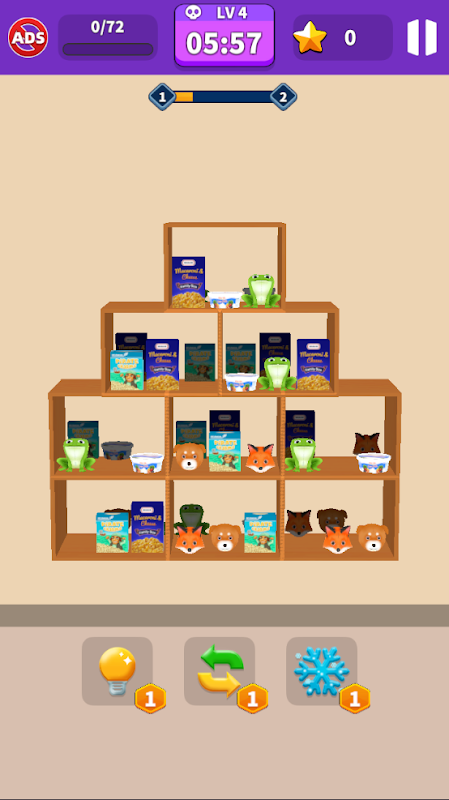 🔄 شیلفز کو منظم کریں: اضافی انعامات کے لیے قسم یا رنگ کے لحاظ سے اشیاء کو ترتیب دیں۔