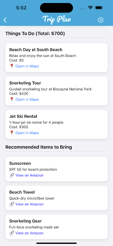 حتمی AI سے چلنے والے ٹرپ پلانر کے ساتھ اپنا اگلا ایڈونچر دریافت کریں۔ چاہے آپ ہفتے کے آخر میں چھٹی کا خواب دیکھ رہے ہوں یا زندگی میں ایک بار کے سفر کا منصوبہ بنا رہے ہوں، ہماری ایپ آپ کے بجٹ میں ذاتی نوعیت کا سفری منصوبہ بنانا آسان بناتی ہے۔ بس ہمیں اپنی منزل، بجٹ اور دلچسپیاں بتائیں، اور ہمارا AI سفر کرنے کے بہترین اوقات، کرنے کی چیزیں، کہاں ٹھہرنا ہے، اور نقل و حمل کے اختیارات تجویز کرے گا۔