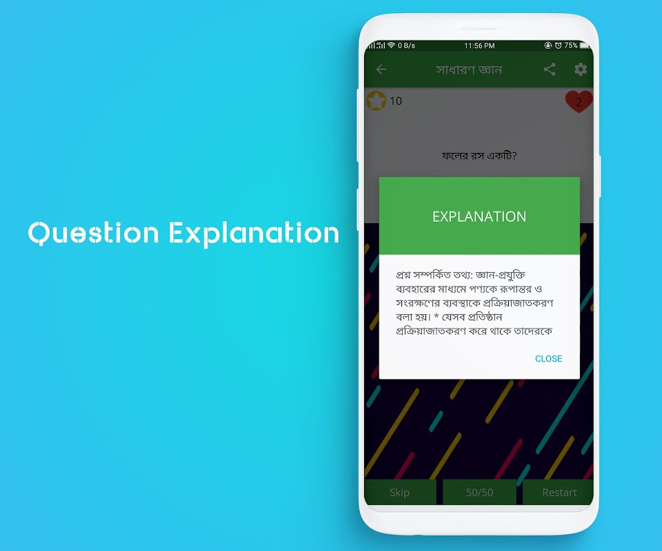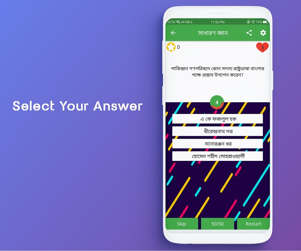 ৫০/৫০ এই অপশনটি ব্যবহার করে দুটি ভুল উত্তর বাদ দিতে পারবেন, প্রশ্ন পরিবর্তন, প্রশ্নের উত্তর ভুল দিলে সঠিক উত্তর দেখাবে যা গেমসটাকে আরও মজাদার ও আকর্ষণীয় করে তুলে।