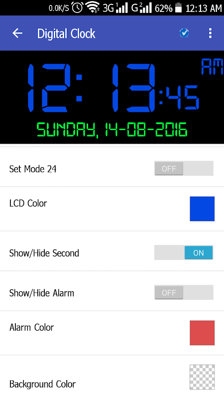 Note: DO NOT USE VERY LOW OPACITY, YOU WILL NOT ABLE TO TAP AND OPEN SETTINGS. IF AND YOU CAN GET THE SETTINGS THEN PLEASE OPEN YOUR APPS DRAWER AND FIND "DIGITAL CLOCK" TO OPEN THE SETTINGS.
