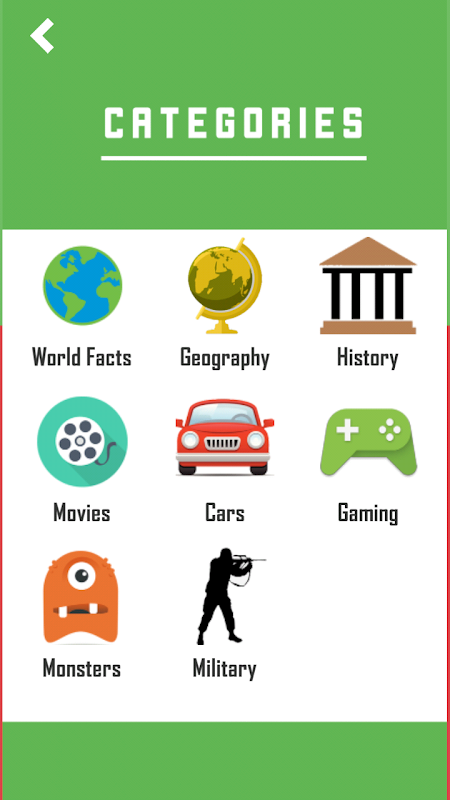 True or False features eight different categories like World Facts, Geography, History, Movies, Cars, Gaming, Monsters and Military.