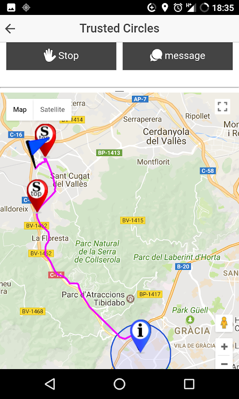 Al volver a casa, de clase, del colegio/universidad o de fiesta, si iniciamos una ruta nueva nuestros contactos de confianza recibirán nuestra posición GPS en tiempo real y podrán ver por dónde vamos. Además podemos escribir mensajes durante la ruta, para hacerles saber si montamos en coche, si cogemos un autobús o si entramos en el metro.