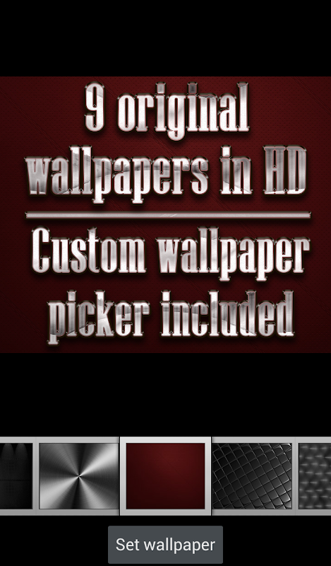 TSF launcher theme compatible with latest TSF Shell version. Extremely detailed and high quality elegant and modern TSF Shell theme with high definition graphics including a 1500 pack of HD icons, 9 custom themed HD wallpapers, and a metal clock widget, to give very detailed and defined graphics even in devices with the highest resolution screens. Everything is themed to the last detail, using metallic textures, lighting effects, reflections and gradients to give a great contrast and quality look.