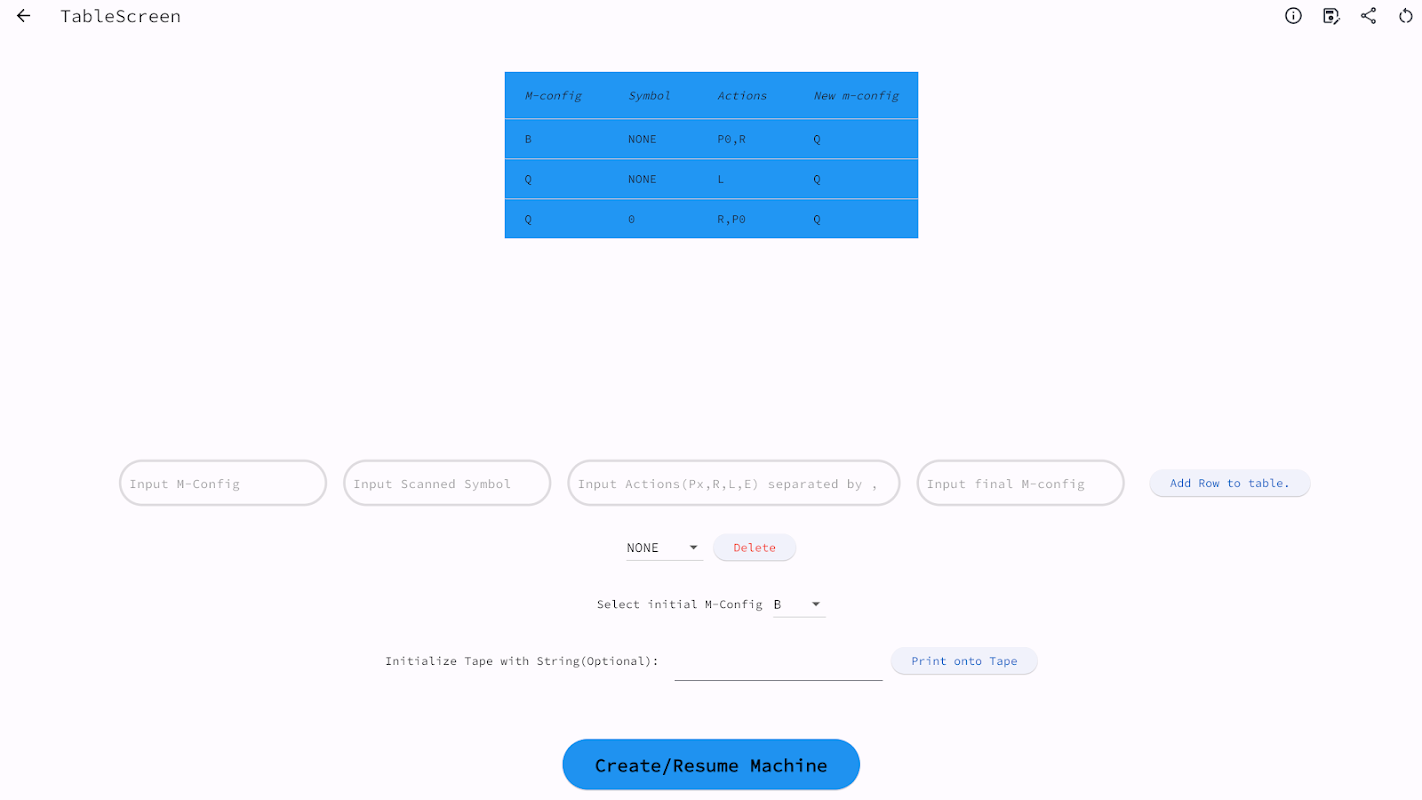 نوٹ: آپ اس ایپ کو استعمال کرنے کے قابل نہیں ہوں گے جب تک کہ آپ کو اس بارے میں بنیادی خیال نہ ہو کہ ٹورنگ مشینیں کیا ہیں۔ ٹورنگ مشینوں کے بارے میں مزید جاننے کے لیے اور ایپ کے افعال میں آسانی پیدا کرنے کے لیے، میں سختی سے تجویز کرتا ہوں کہ آپ گیتھب پر اس پروجیکٹ کی دستاویزات پڑھیں: