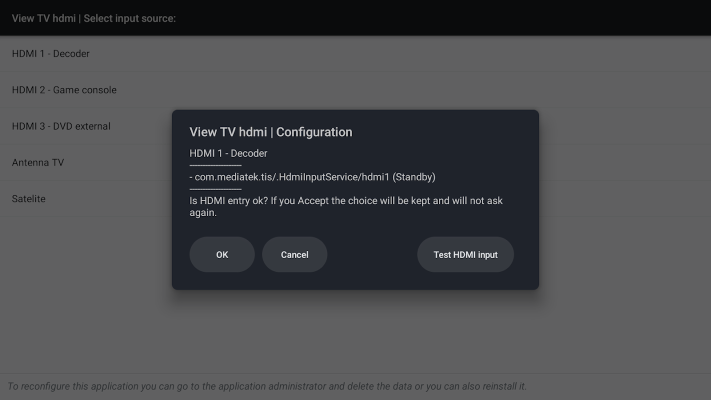ایپلیکیشن آپ کو دیگر ایپلی کیشنز سے ٹی وی سورس، HDMI ان پٹ یا ٹی وی کے ذرائع کا انتخاب کرنے کی اجازت دیتی ہے تاکہ براہ راست ایپلی کیشن کے ذریعے مذکورہ سورس تک رسائی حاصل کی جا سکے۔