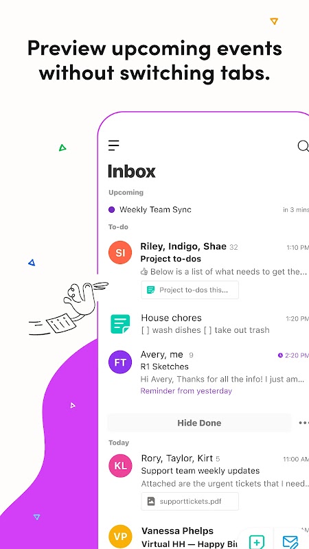 اطلاقات سوئچ کیے بغیر جانکاری میں رہیں — نوٹ ، یاد دہانی اور کیلنڈر آپ کے ان باکس میں جڑے ہوئے ہیں۔