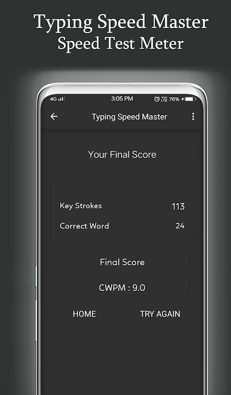 If you always wanted to be better at typing on your phone, then Typing Speed Test is the ultimate tool for you to use. With its help you can learn how to type naturally and the results will be amazing.