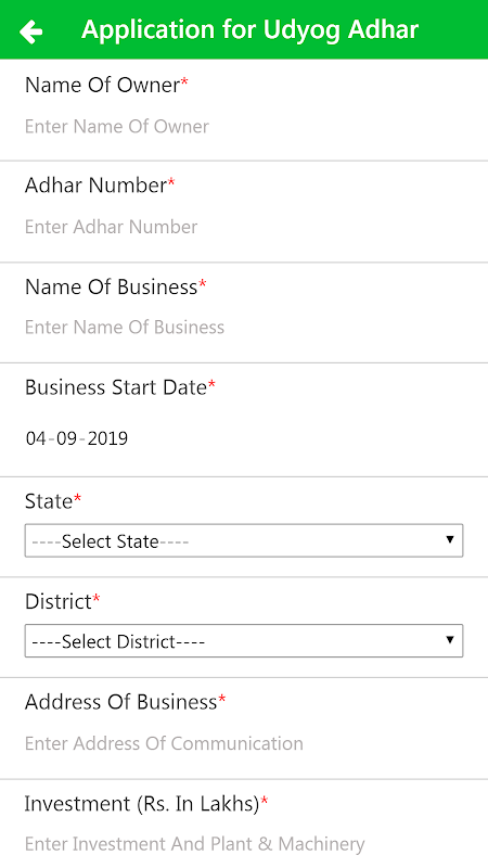 Udyog Aadhar : MSME / Aadhar Udyog Registration App
