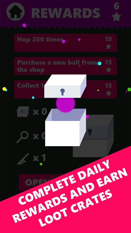 Stars can be used to purchase different balls in the shop. While keys and loot crates can be collected and opened for amazing rewards. Having trouble collecting stars and opening those loot crates? Earn stars and loot crates from completing daily rewards or completing challenges. With 20+challenges that can be completed, each completion rewarding you with more stars and keys.