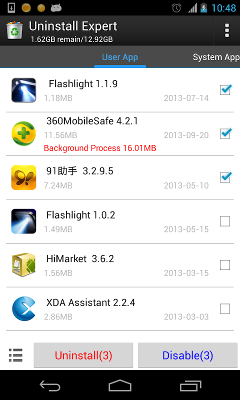 Uninstall experts to provide you the most complete, easiest quickest uninstall feature, a unique sort of memory occupied by running in the background, so you can easily uninstall often occupy a background resource applications!