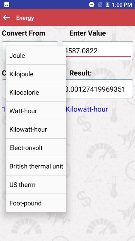 * You can convert energy in Joule calorie Watt hour Electronvolt and many more.