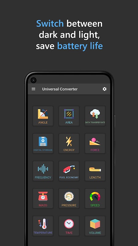 یونیورسل کنورٹر 15 زمرے، 100+ یونٹس اور درج ذیل خصوصیات پیش کرتا ہے: