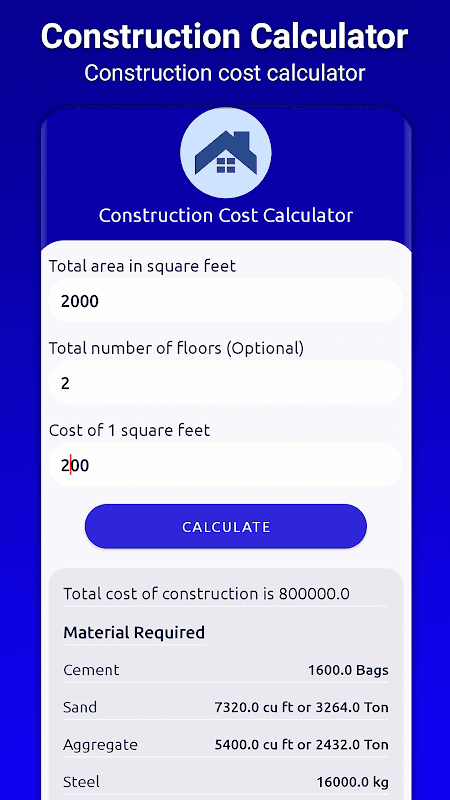 تعمیراتی کیلکولیٹر ایک ایسا آلہ ہے جسے تعمیراتی پیشہ ور افراد کسی پروجیکٹ کی لاگت کا تخمینہ لگانے کے لیے استعمال کرتے ہیں۔ یہ مواد، لیبر، اور اوور ہیڈ کی لاگت کو مدنظر رکھتا ہے۔ تعمیراتی کیلکولیٹر کو مختلف مقاصد کے لیے استعمال کیا جا سکتا ہے، جیسے کہ نئی عمارت کی لاگت کا تخمینہ لگانا یا گھر کو دوبارہ بنانے کی لاگت۔