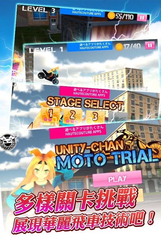 透過晃動手機的角度選擇特技車的揚角,飛躍各種障礙物!