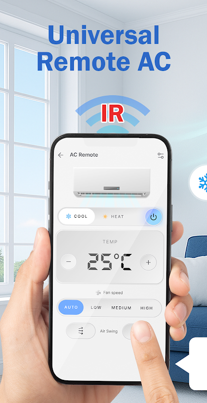 یونیورسل AC ریموٹ کنٹرولر - آپ کے فون کو یونیورسل AC ریموٹ میں بدل دیتا ہے، جس سے آپ کو اپنے ایئر کنڈیشنر کو کسی بھی وقت، کہیں بھی سمارٹ خصوصیات، تیز جوڑی اور وسیع برانڈ مطابقت کے ساتھ کنٹرول کرنے میں مدد ملتی ہے۔